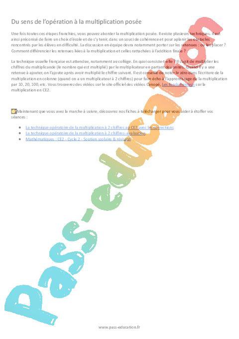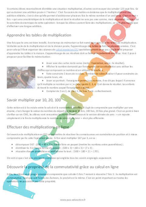 Les attendus en multiplication fin de CE2Afin de bien orienter ses cours, il faut savoir où aller. Le CE2 se situe à la fin du cycle 2 de l’école primaire. Vous pouvez donc vous référer aux attendus en mathématiques du socle commun de connaissances et de compétences :