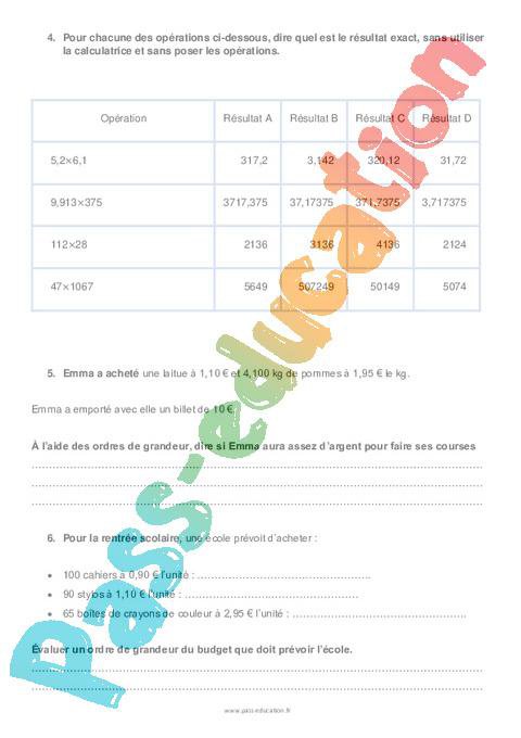 Exercices, révisions sur « Ordre de grandeur d’un produit » à imprimer avec correction pour la 6ème