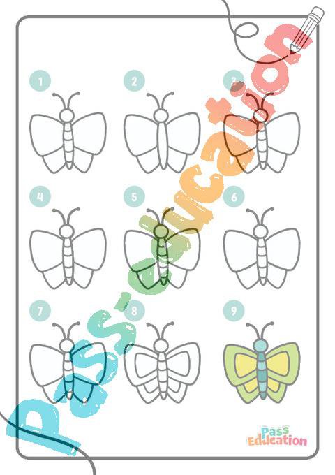 Dessins à étapes sur le papillon pour la maternelle (Petite section, Moyenne section & Grande section).