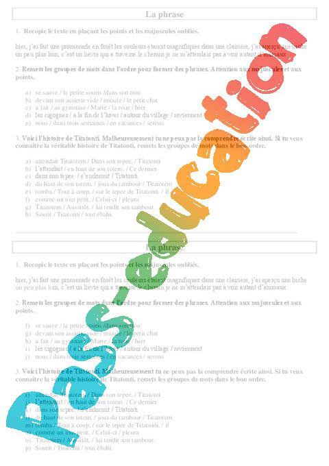 Phrase – Ce2 – Exercices – Cycle 2 – PDF à imprimer