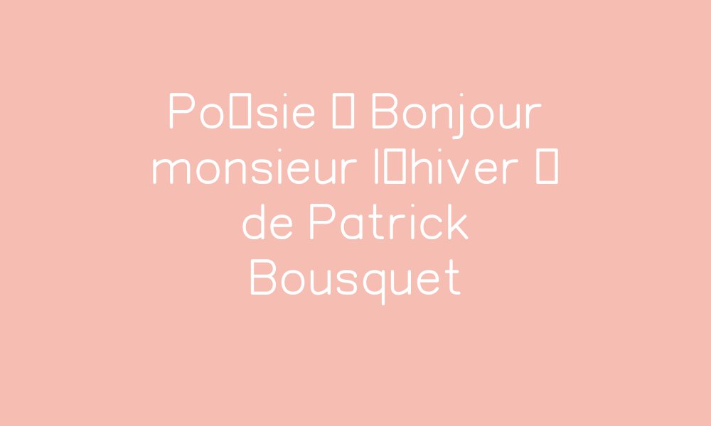 Poésie « Bonjour monsieur l’hiver » de Patrick Bousquet
