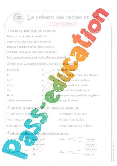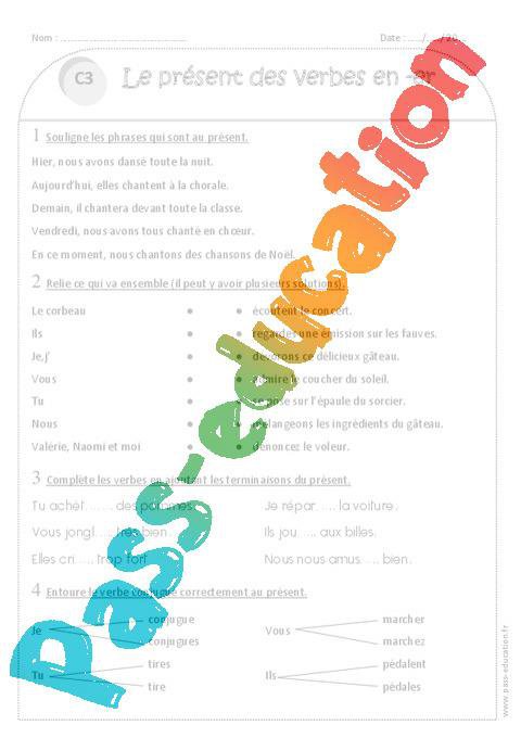 Présent des verbes en -er – Ce1 – Exercices – Cycle 2 – PDF à imprimer