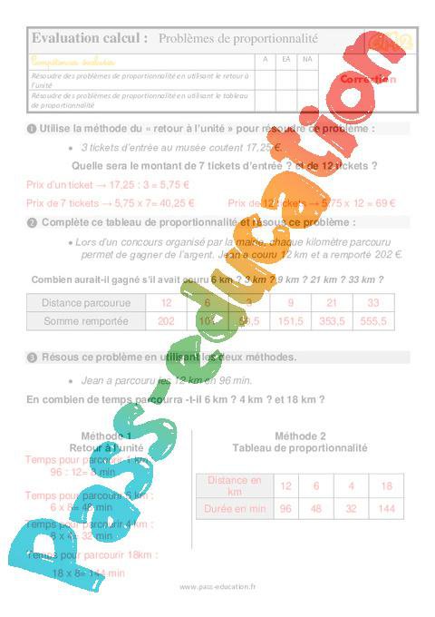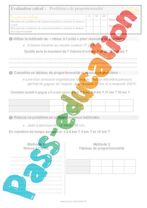 Evaluation bilan pour le CM2 sur les problèmes de proportionnalité pdf