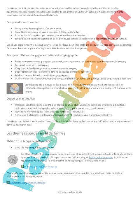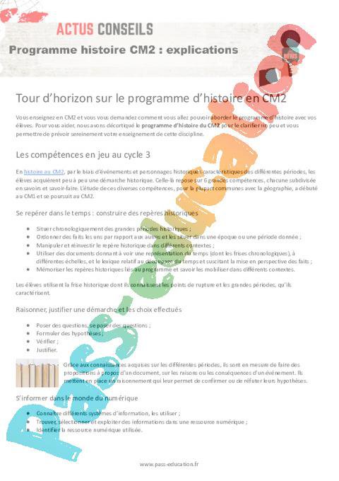 Les compétences en jeu au cycle 3En histoire au CM2, par le biais d’événements et personnages historiques caractéristiques des différentes périodes, les élèves acquièrent peu à peu une démarche historique. Celle-là repose sur 6 grandes compétences, chacune subdivisée en savoirs et savoir-faire. L’étude de ces diverses compétences, pour la plupart communes avec la géographie, a débuté au CM1 et se poursuit au CM2.