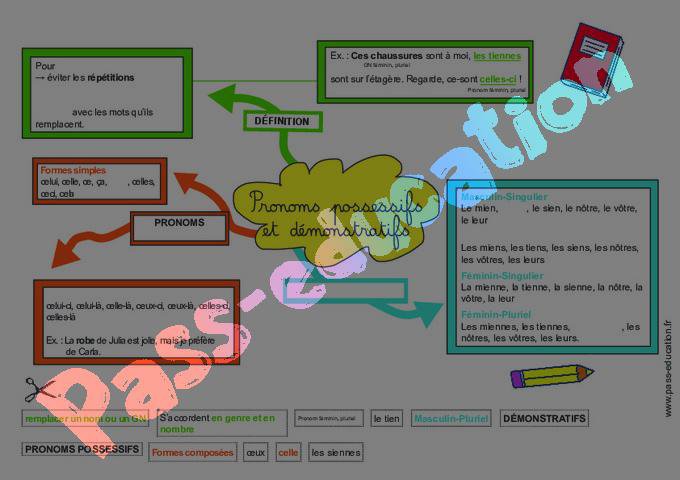 Cette carte mentale sur « la grammaire » va permettre à l’aide de mots clés et d’associations d’idées d’avoir une vision synthétique sur la notion à mémoriser « Pronoms possessifs et démonstratifs« .
