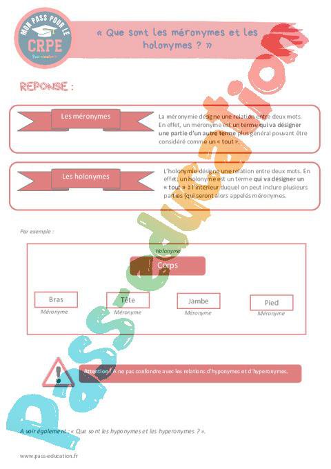 Que sont les méronymes et les holonymes Mon Pass pour le crpe pdf
