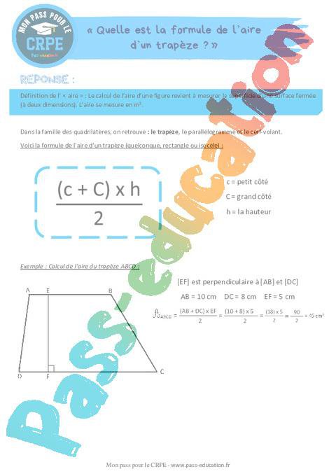 Quelle est la formule de l’aire d’un trapèze – Mon pass pour le crpe pdf