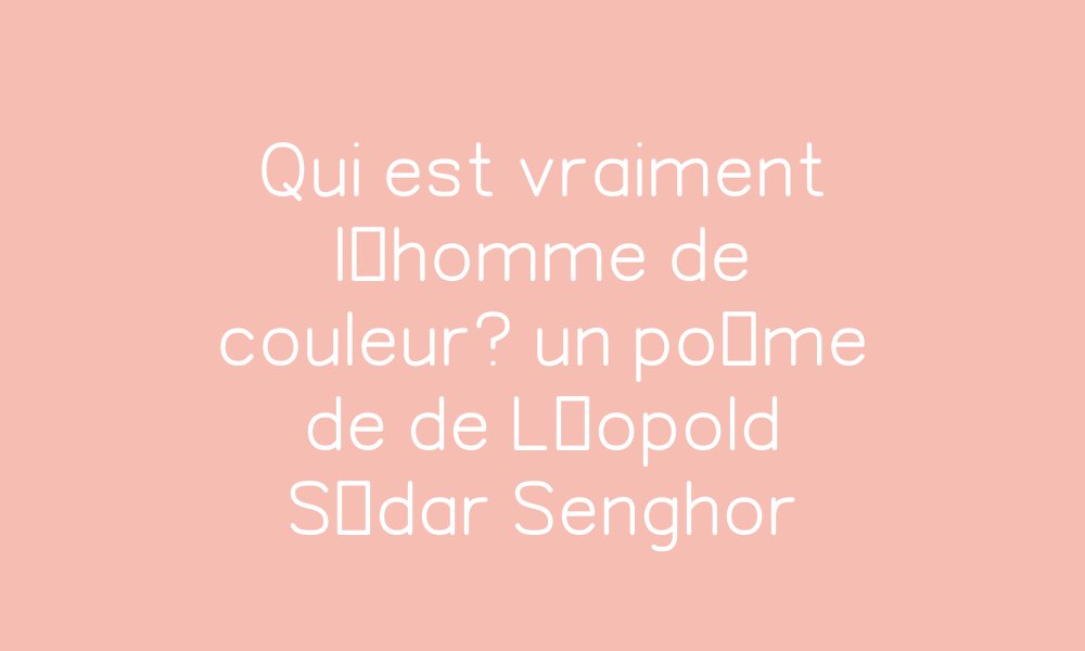 Qui est vraiment l’homme de couleur? un poème de de Léopold Sédar Senghor