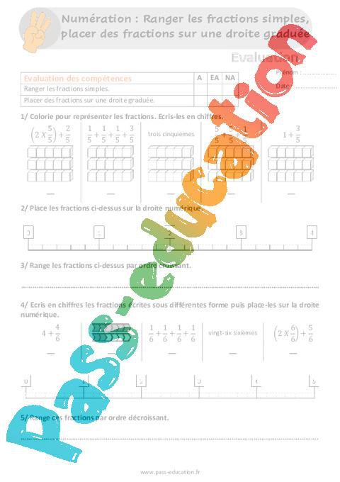 Evaluation Cm1 Ranger les fractions simples, placer sur une droite graduée pdf