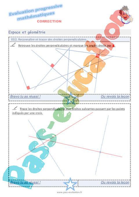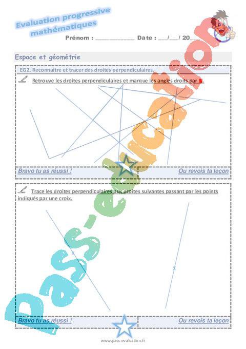 Reconnaître et tracer des droites perpendiculaires au Cm1 – Evaluation progressive pdf