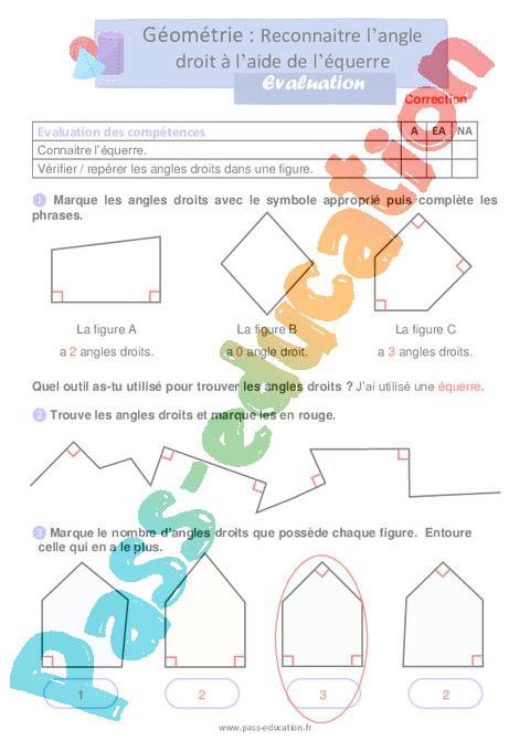 Correction Evaluation CE1 Reconnaitre l’angle droit à l’aide de l’équerre pdf