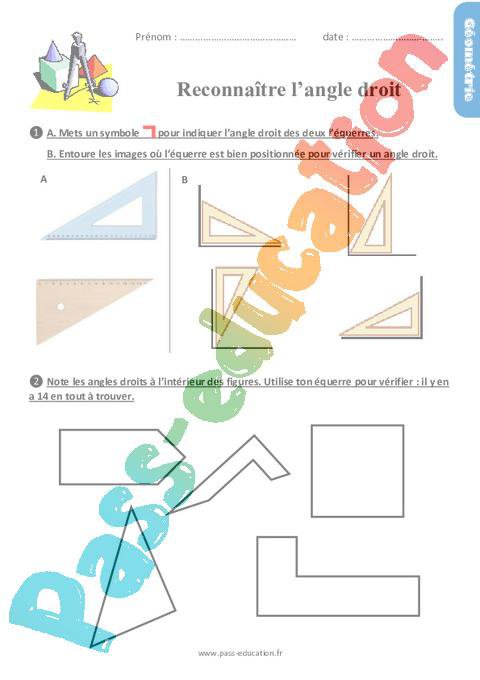Exercices CE1 Reconnaître l’angle droit pdf