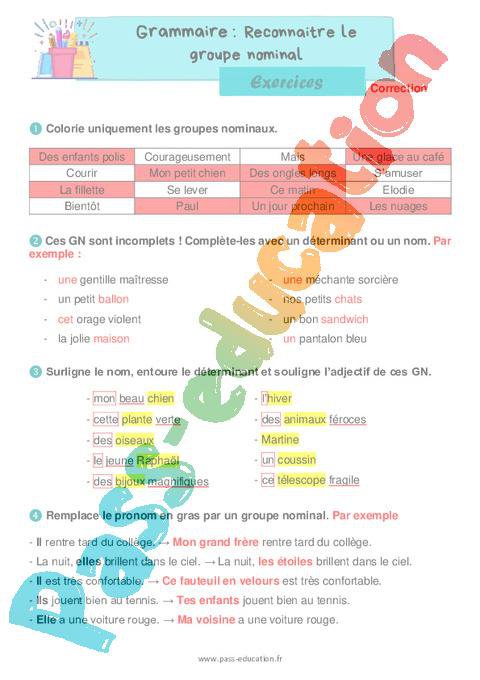 Exercices Correction ce1 Reconnaître le groupe nominal pdf