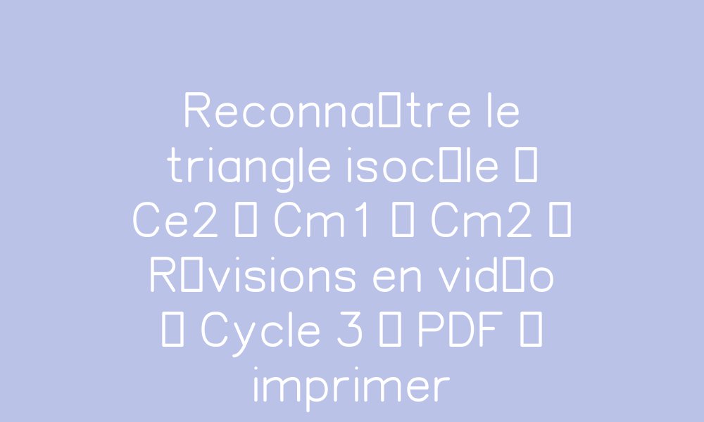 Reconnaître le triangle isocèle – Ce2 – Cm1 – Cm2 – Révisions en vidéo – Cycle 3