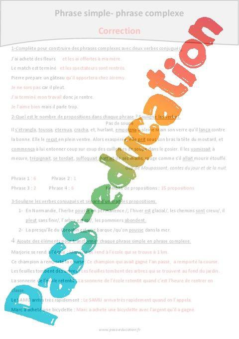 Phrase simple – Phrase complexe – Cm2 – Grammaire – Exercices corrigés