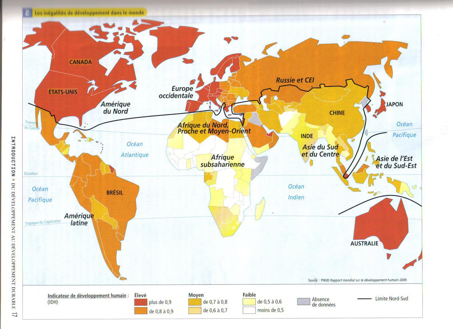 - Le doc 3 (carte de l'IDH) est projeté au tableau.