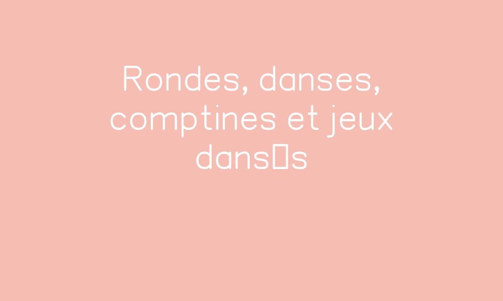 – 61 rondes (rondes simples, rondes finissant en position accroupie, rondes avec rebond et accroupi, rondes en avançant et en reculant, rondes changeant de sens, rondes tournant le dos, rondes mimées, rondes avec des enfants au milieu, rondes énumératives, rondes éliminatoires),