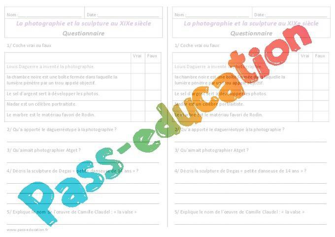 Sculpture – Photographie – XIXe siècle – Cm1 – Cm2 – Arts du visuel – Histoire des arts – Cycle 3 – PDF à imprimer
