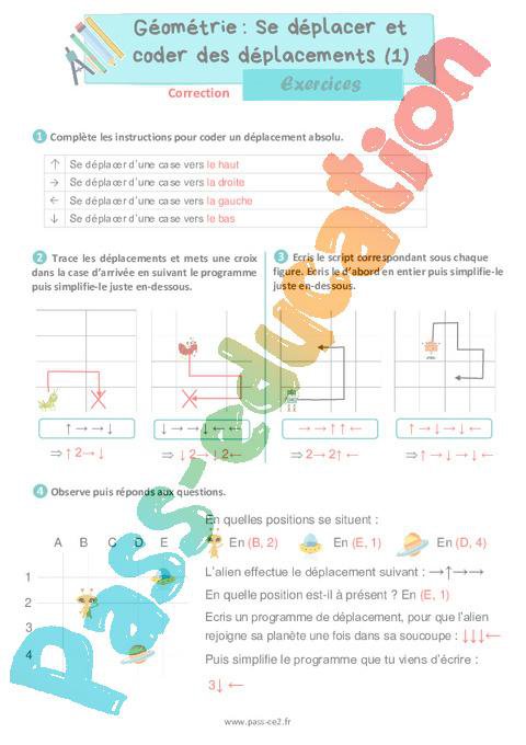 Exercices Ce2 Se déplacer et coder des déplacements (1) pdf