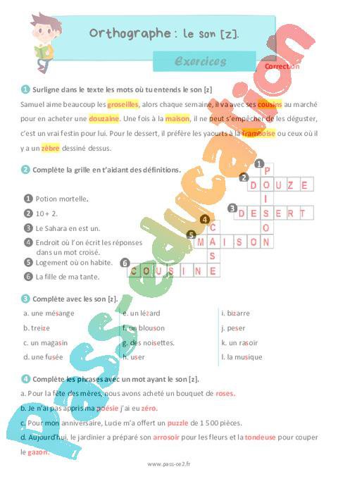 Exercices Ce2 le son [z] pdf