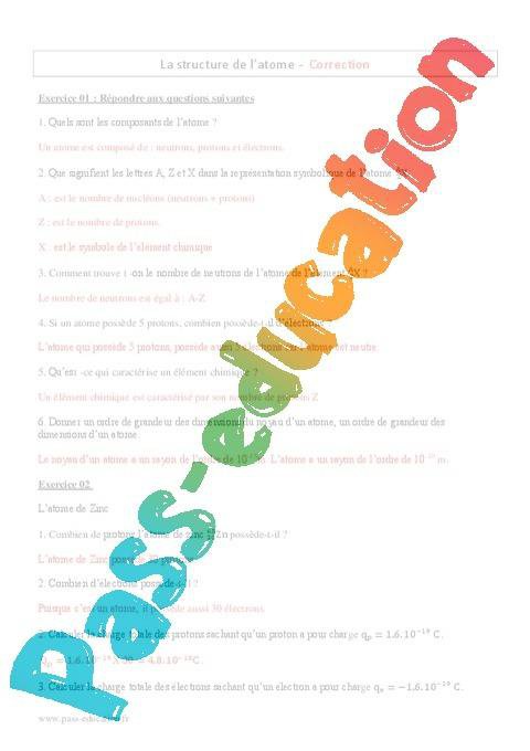 Structure de l’atome – 2nde – Exercices corrigés rtf
