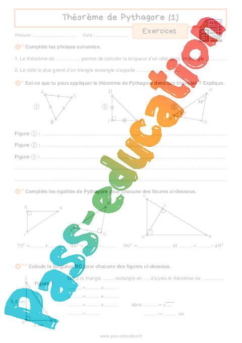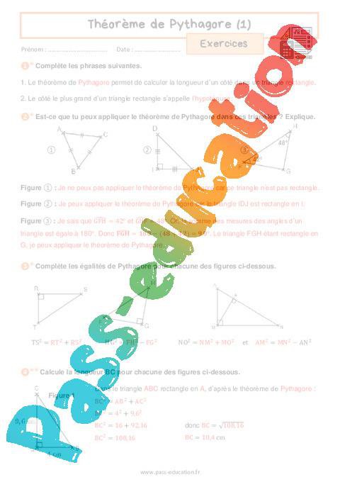 Exercices Correction 4ème Théorème de Pythagore pdf