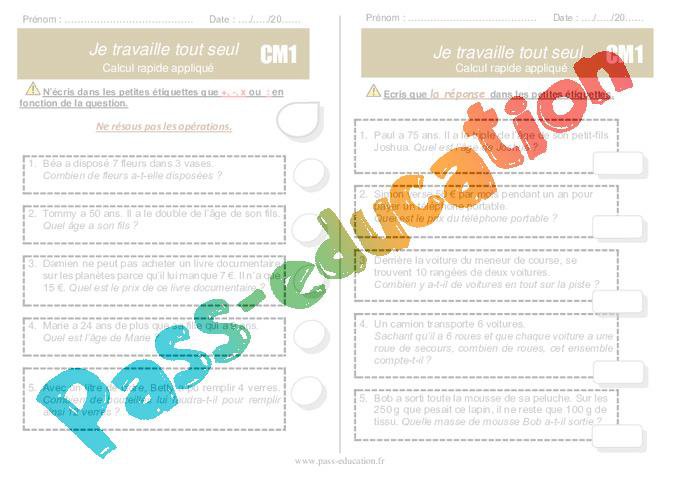 Calcul rapide appliqué-CM1-Travail en autonomie pdf