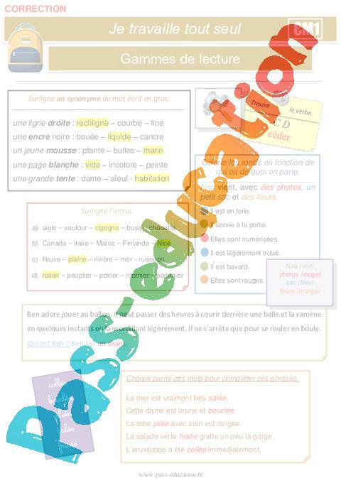 Gammes de lecture-CM1-Travail en autonomie-Correction pdf