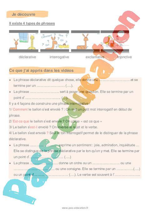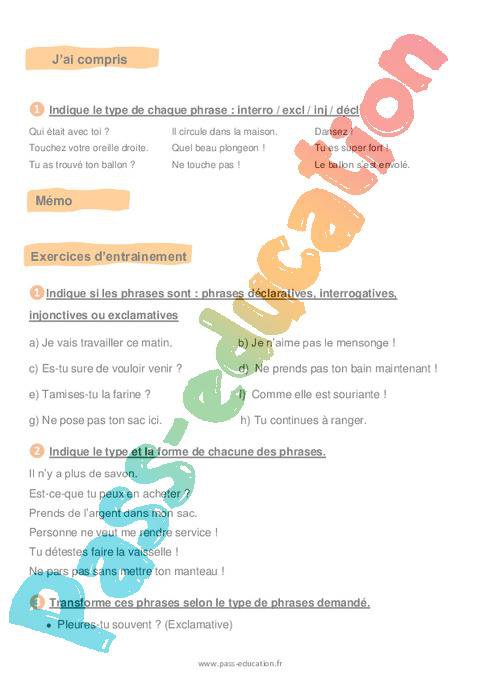 Types de formes de phrases – CM2 – Soutien scolaire grammaire pdf