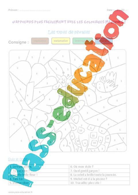 Coloriage magique à imprimer pour le ce1 – Types de phrases