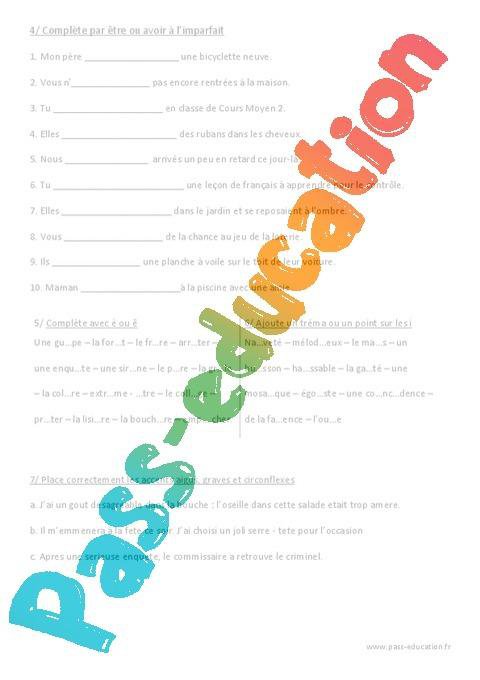 Correction – Verbes être et avoir à l’imparfait – Accents – le tréma – Dictée préparée – A trous – Cm2 pdf