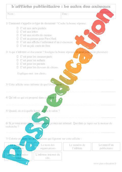 Une affiche publicitaire – Lecture – Textes prescriptifs, fonctionnels – Cycle 2 – PDF à imprimer