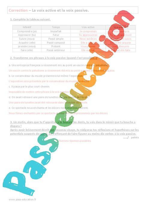 Voix passive – Voix active – 4ème – Evaluation à imprimer pdf